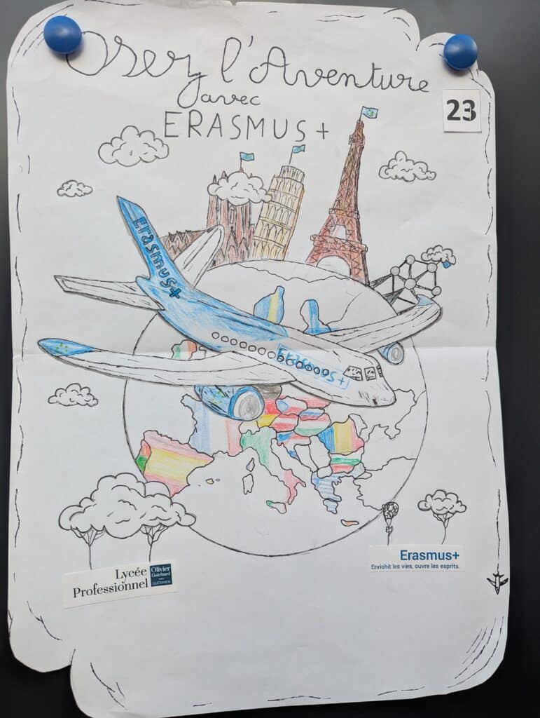 Cette année, le concours avait pour thème « Imagine ta mobilité avec Erasmus+ ». Ce sont 90 affiches qui ont été réalisées par les élèves, témoignant d’un fort investissement créatif et collectif. Les productions ont été exposées au Centre de Documentation et d’Information (CDI) de l’établissement, où près de 350 personnes — élèves, personnels et visiteurs — ont été invitées à voter pour leurs affiches préférées.